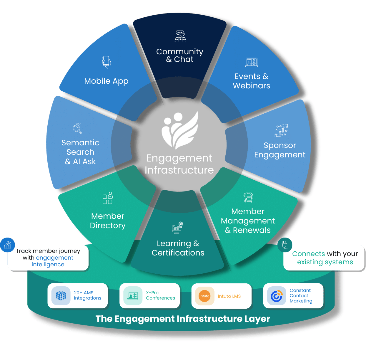 Engagement infrastructure enables associations to deliver continuous member interaction through communities, learning programs, events, and knowledge sharing.