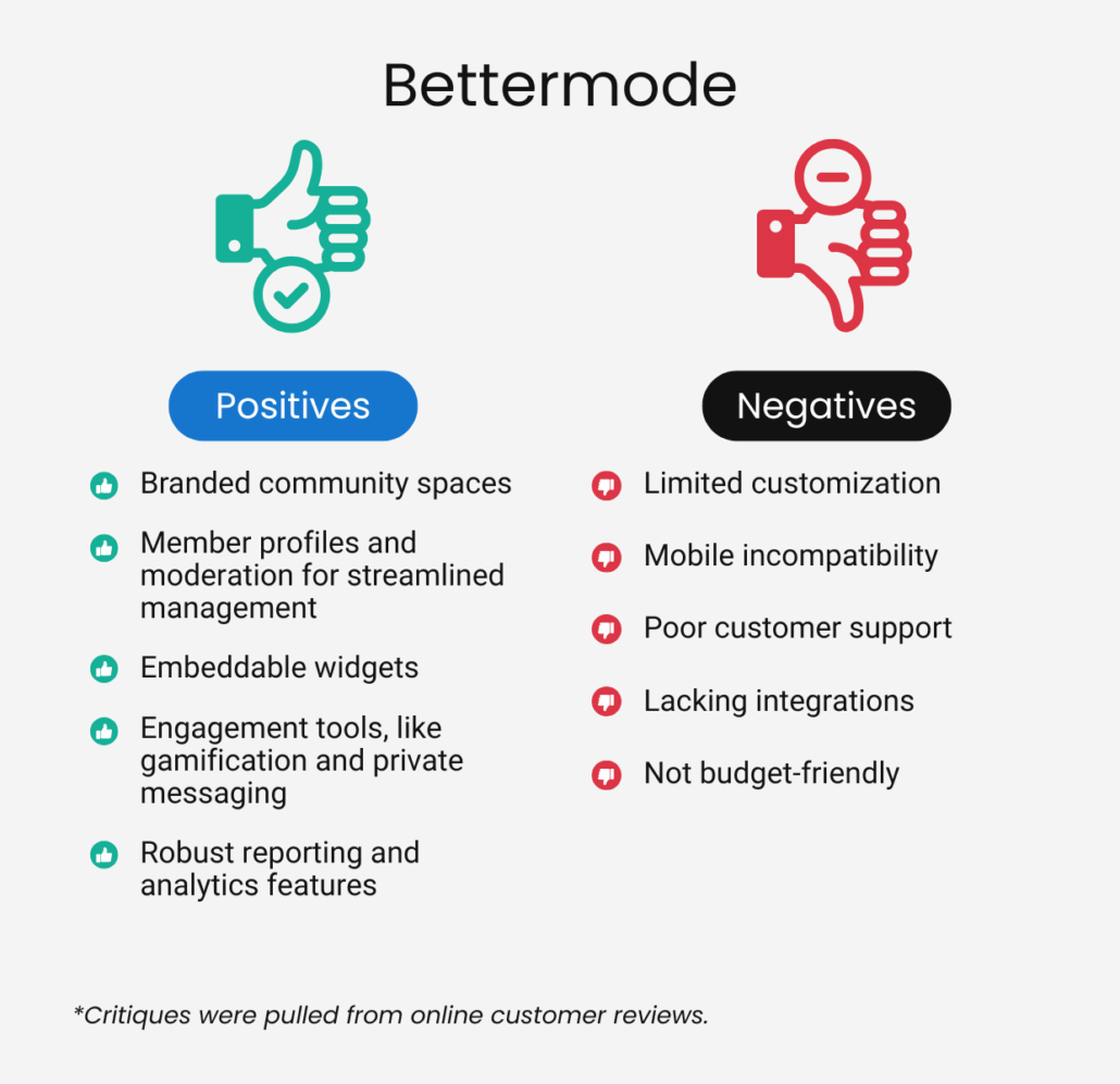 For easy reference, here’s a chart comparing Bettermode’s pros and cons:
