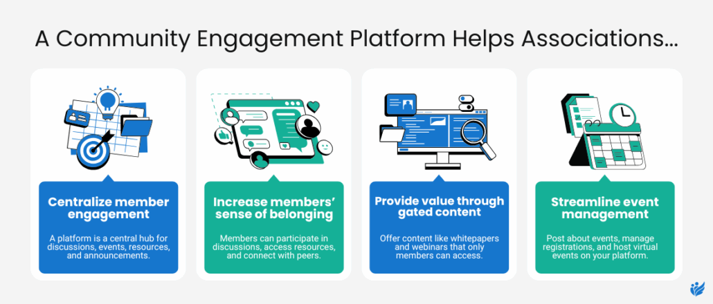 - Provide value through gated content. Associations can promote exclusive members-only content on their community engagement platform, boosting event attendance and resource access.